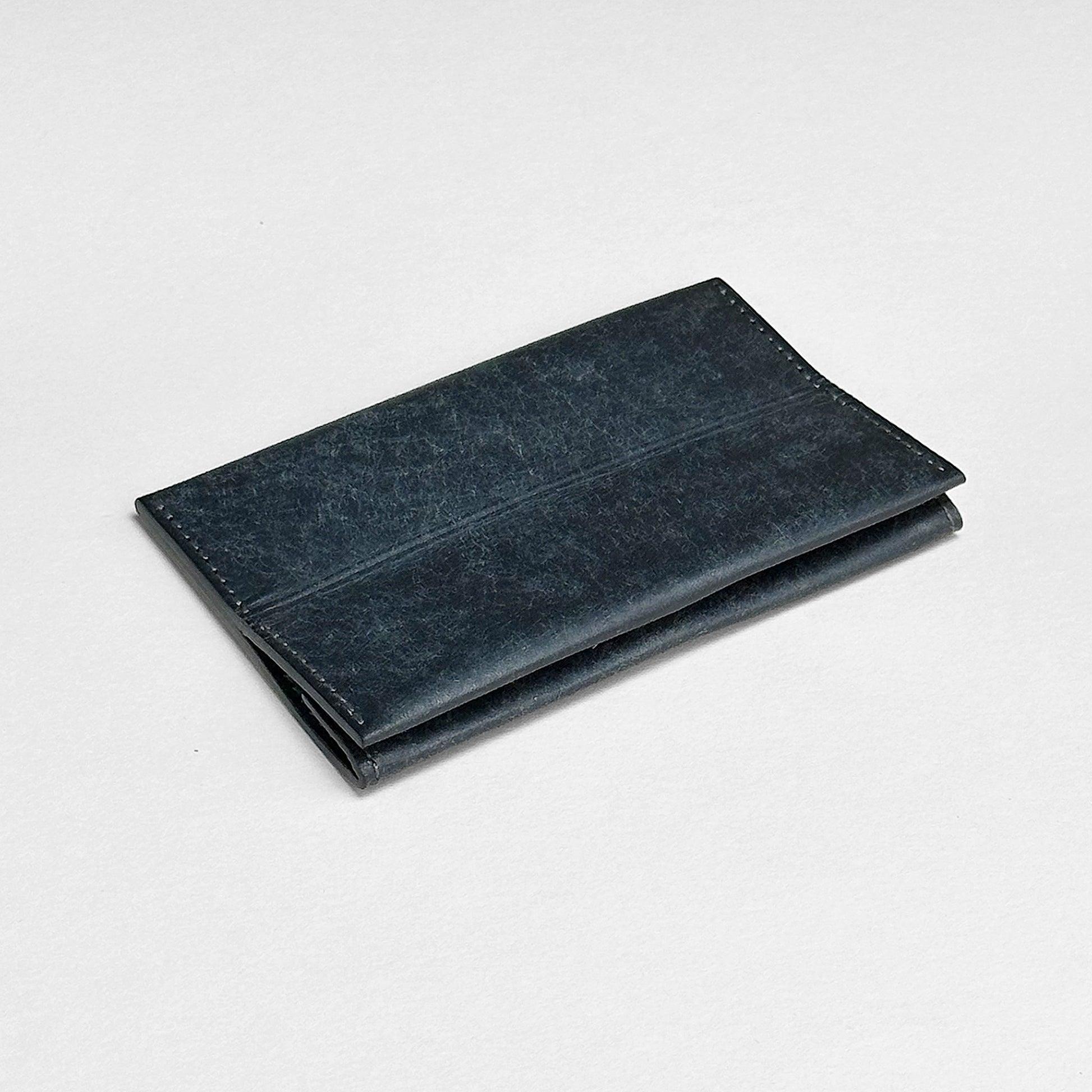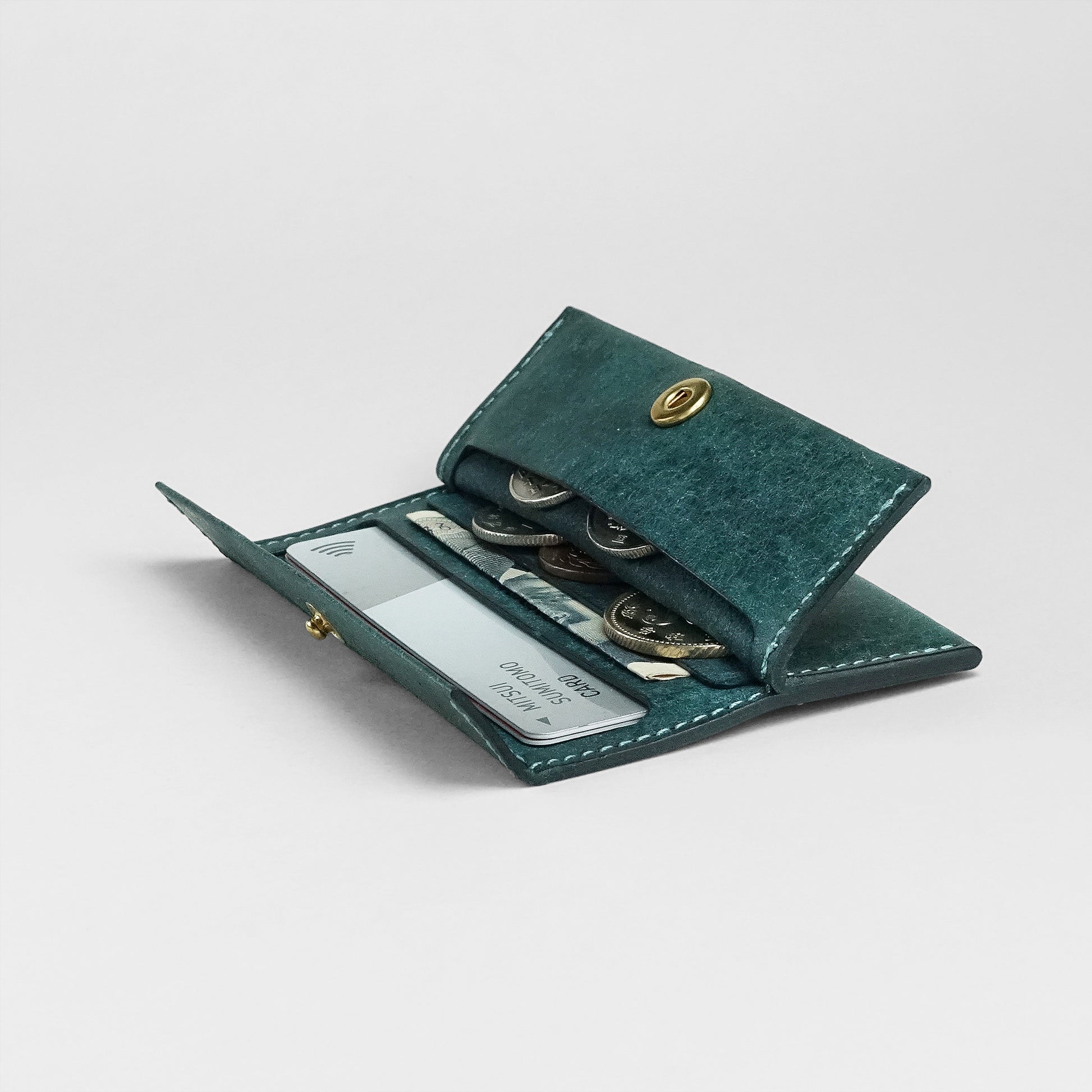 Less Walletは継ぎ目のない一枚のパーツにすべての要素を集約し、折り返し縫い合わせながらシームレスに包み込むユニークな極薄デザインです。片手でフリップ側を上にして握り、親指でホック部を跳ね上げると、カードと紙幣、硬貨が同時に現れるレイアウト。硬貨は一方にかさばらないよう浅く上下2段に分散されたコインフリップの採用で瞬時にアクセスできます。