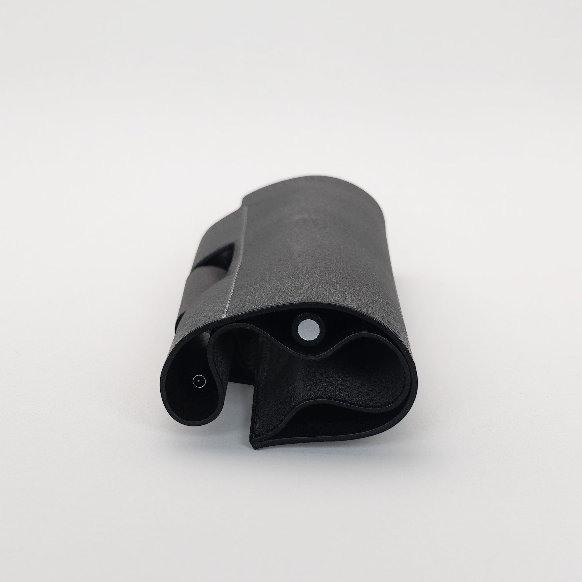 シンプルな外観のLim Pen Sleeveですが、実は拡げると複雑な形状をした、たった1枚のパーツを内側に折り込むことで、継ぎ目のないなめらかで一体感のあるフォルムが形成されています。丸まったペンスリーブから外側のペンを取り出し、開くとそのままペントレー感覚で使用することができます。愛用のペンと一緒に自宅や外出先の机上で拡げる楽しみも加わります。